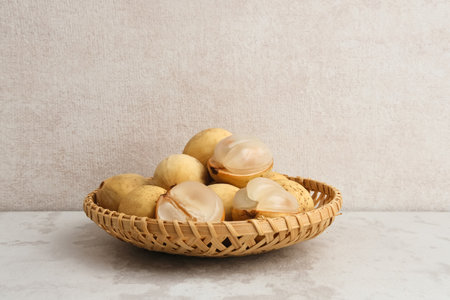 Fresh longan in Bamboo bowl