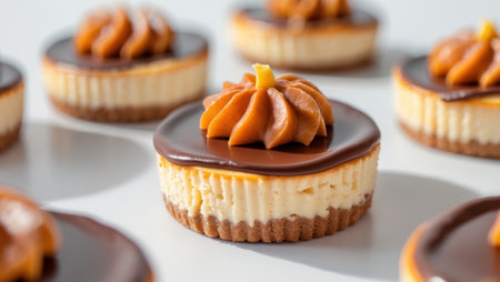 AI Generated. Delicious Mini Pumpkin Cheesecakes with Chocolate Topping