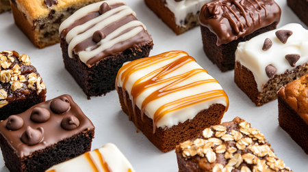 This vibrant image showcases colorful chocolate bars with nuts and candies arranged on a bright background, perfect for food photography and dessert themes.