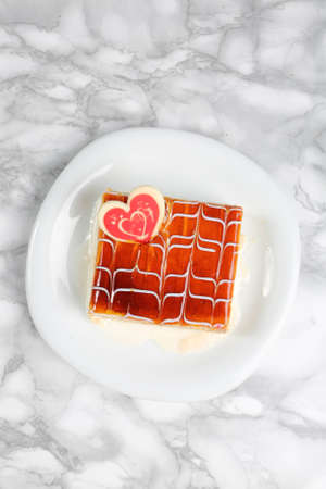 Delicious chocolate sweet cake on a plate.