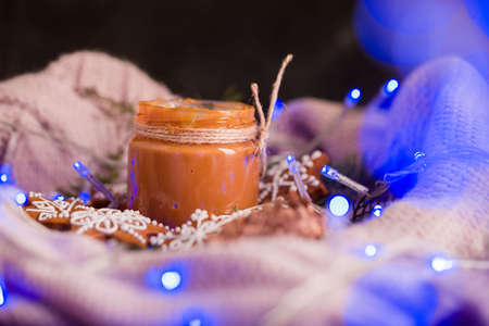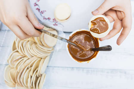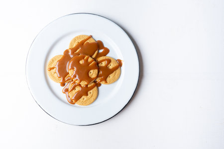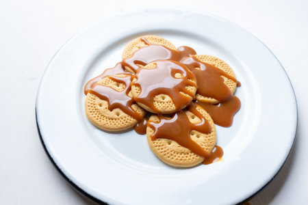 Mexican sweet caramelized goat milk called cajeta on cookies