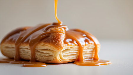 AI Generated. Close Up of Delicious Glazed Pastry with Caramel Drizzle
