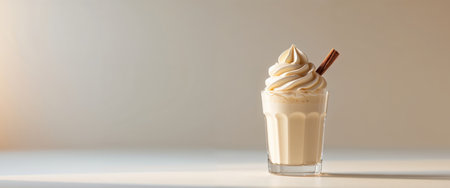 AI Generated. A glass of a drink with whipped cream on top and a cinnamon stick