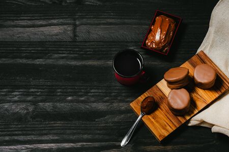 traditional sweet argentinian chocolate biscuit over a black table with a tablecloth