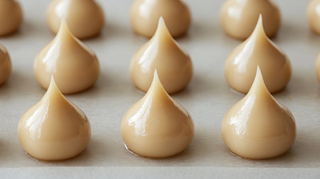Delight in the artistry of baking with these elegantly shaped meringue peaks poised on parchment, showcasing the creamy texture and sweetness ideal for desserts.