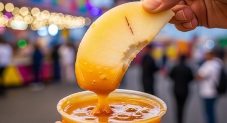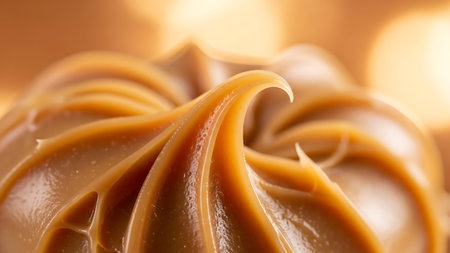 Macro Close-up of Creamy Salted Caramel Swirl with Glossy Texture