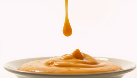 Brazilian dulce de leche in isolated spoon on the white background copy the space, generative AI
