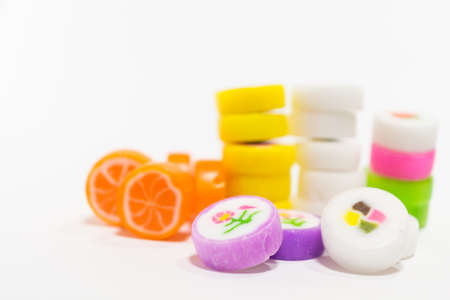 Colored, children's, unhealthy candy, sweet-stuff. Background of sweets Top view