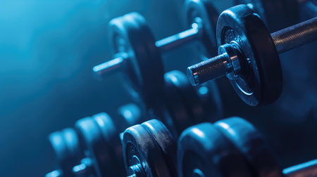 This image showcases a series of dumbbells arranged neatly against a sleek blue surface, perfect for fitness enthusiasts looking for modern equipment inspiration.