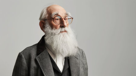 Portrait of an elderly professor with a long white beard and thoughtful expression, conveying wisdom and experience