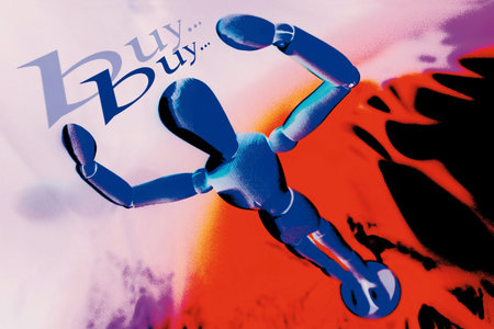 Image of a doll shopping with a credit card