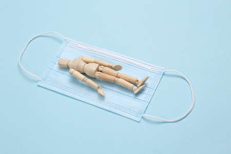 Wooden mannequin on a medical mask