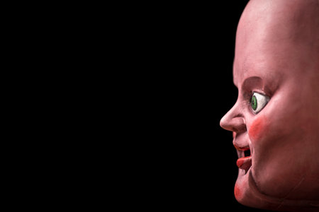 Creepy doll head in the dark