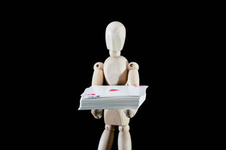 wooden dummy and poker cards, puppet made of wood, art mennequin.Wooden Doll