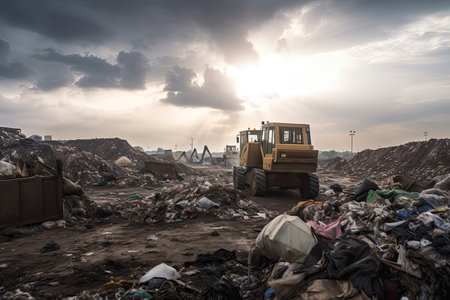 landfill site, with trucks coming and going, bringing new waste to be disposed, created with generative ai