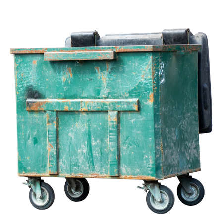 An old and rusty wheeled trash can. isolated