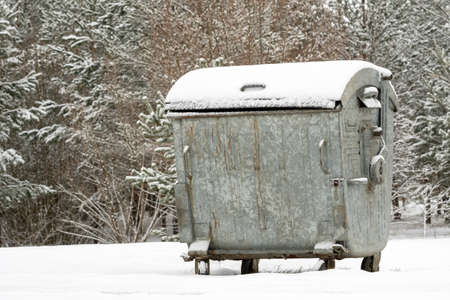 Big gray garbage container in a winter park