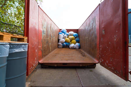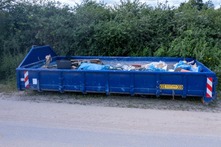 Large Industrial Dumpster Filled with Construction Waste and Garbage. High quality photo
