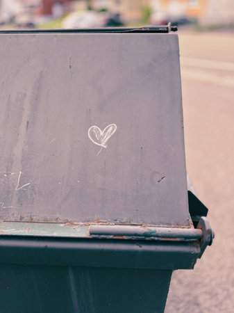Garbage bin with heart symbol on it. Selective focus.