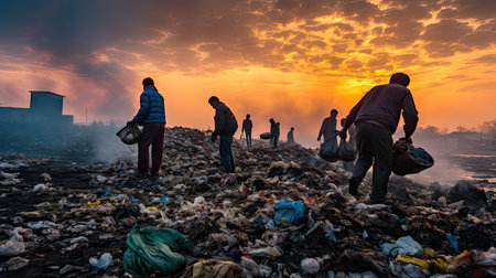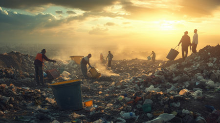 People on a big garbage dump. Pollution of the environment and our planet. Generative AI