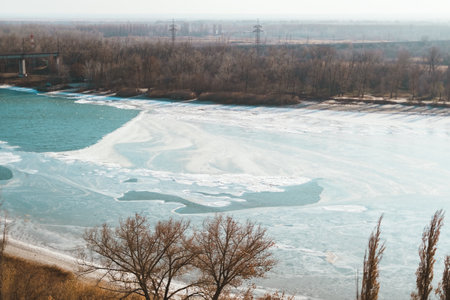 Wide river. Eastern european background with copy space for text or lettering. Ideal for fishing and rafting. View through the eyes of a tourist