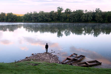 Beautiful view over the river on a sunrise. Outdoor recreation. Dniester panorama.