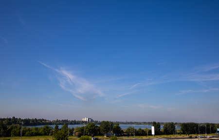 Panorama of Lake Jezero Tresetiste in summer, during a sunny afternoon. Tresetiste is a pond lake in Subotica, near suboticka pescara, in Serbia, vojvodina.