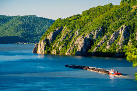 View at cargo ship at Danube gorge in Djerdap on the Serbian-Romanian border