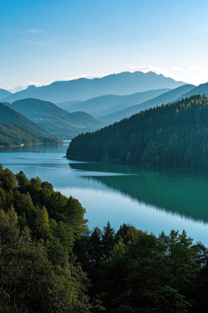 Peaceful lake scenery in the mountains and forests
