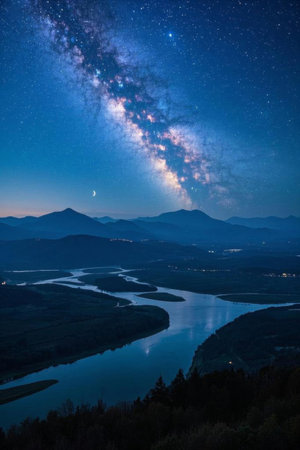 A starry sky of rivers and mountains under the night sky