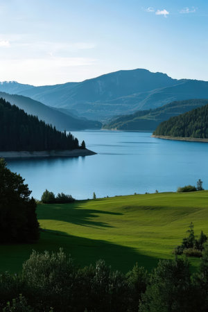 A breathtaking view of a tranquil lake surrounded by green nature