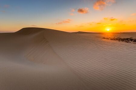 Sand dunes in the National Park of Dunas de Corralejo during a beautiful sunrise- Canary Islands - Fuerteventura