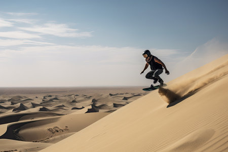 Skateboarder in the sand dunes