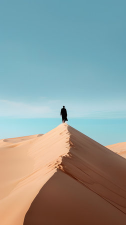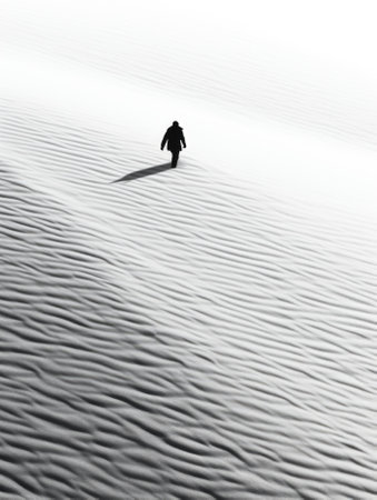 Silhouette of a man walking in the sand dunes at sunset