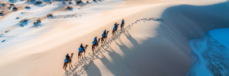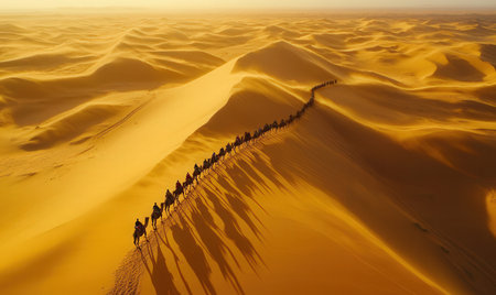 Camel caravan in the desert. 3d rendering. Computer digital drawing.