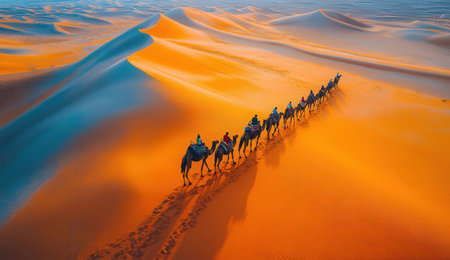 Caravan of camels in the Sahara desert, Morocco, Africa