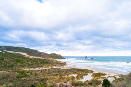 Beautiful landscapes it the Ocean Beach, New Zealand. Inspiring natural and travel background