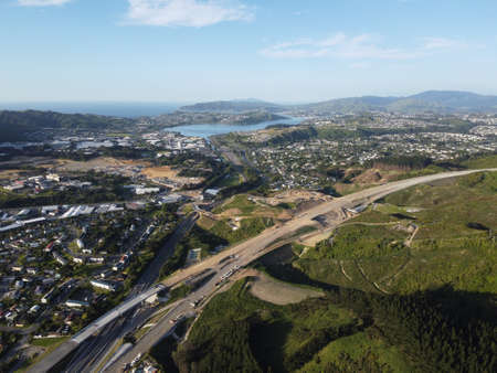 An aerial shot of Tawa in Wellington on a sunny summer day