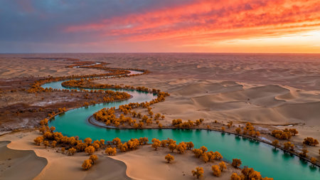 Aerial view of the Dunhuang river in Dunhuang National Park, China