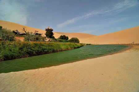 Dunhuang, China - August 06, 2014: The Crescent Lake Oasis in Dunhuang, China