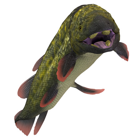 3D rendering of a Mawsonia, an extinct genus of prehistoric coelacanth fish isolated on white background