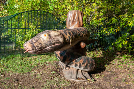 Russia, Moscow - September 29, 2018: Huge snake monster prehistoric full size model