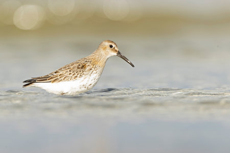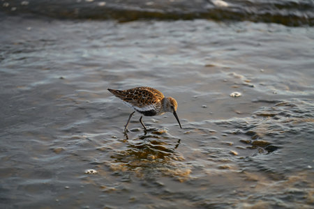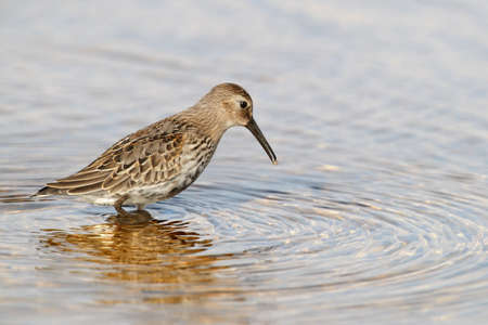 Curlew sandpiper (Calidris ferruginea) looking for food in the water