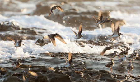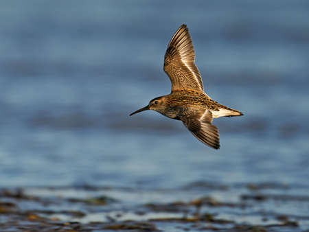 Sandpiper in flight over the Baltic Sea. Russia, Europe.