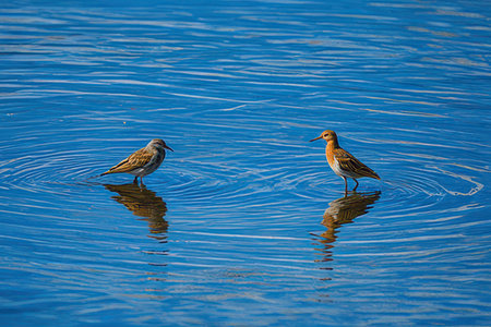 A pair of curlew sandpipers, Calidris ferruginea, at lake Korisson, Greece.