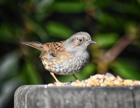 Dunnock (Prunella modularis) feeding on a bird table