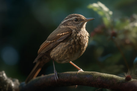 Small bird perching on branch, enjoying tranquil forest scene generated by artificial intelligence