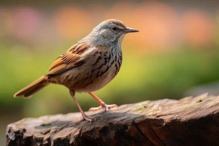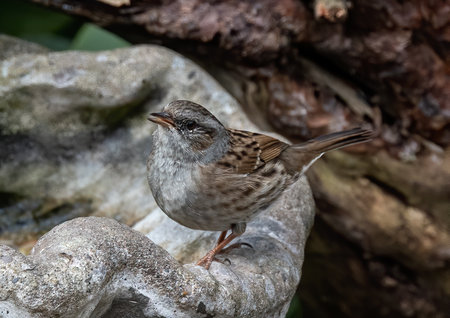 Dunnock perched on a log in the garden