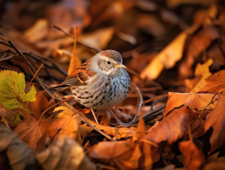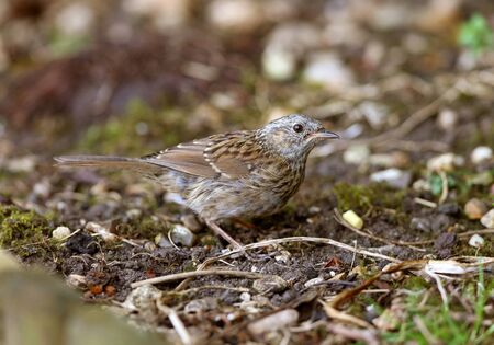 Dunnock foraging for food in the woods