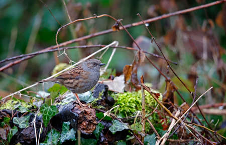 Dunnock - Prunella modularis, small shy passerine bird from Europeans gardens and woodlands, Zlin, Czech Republic.